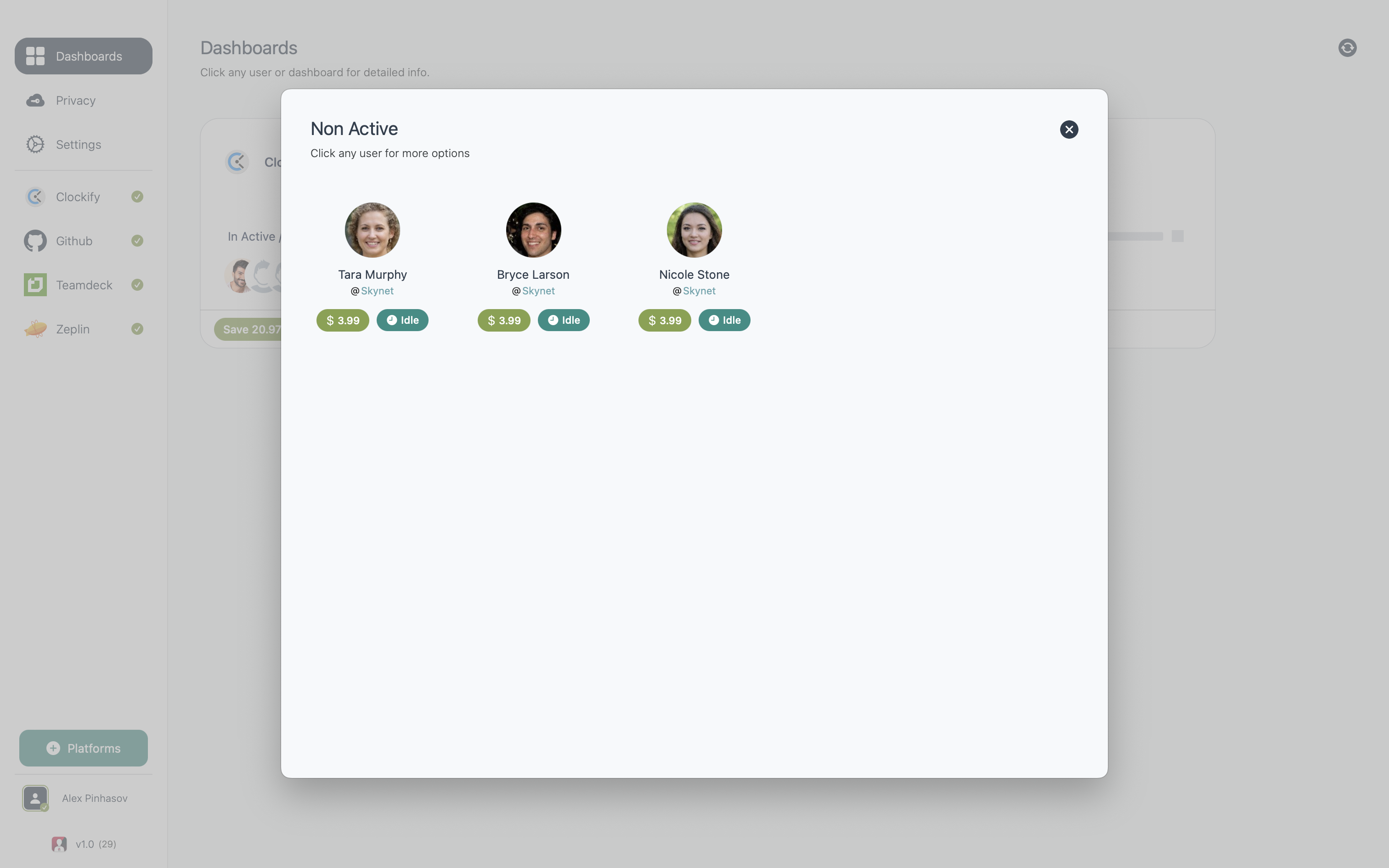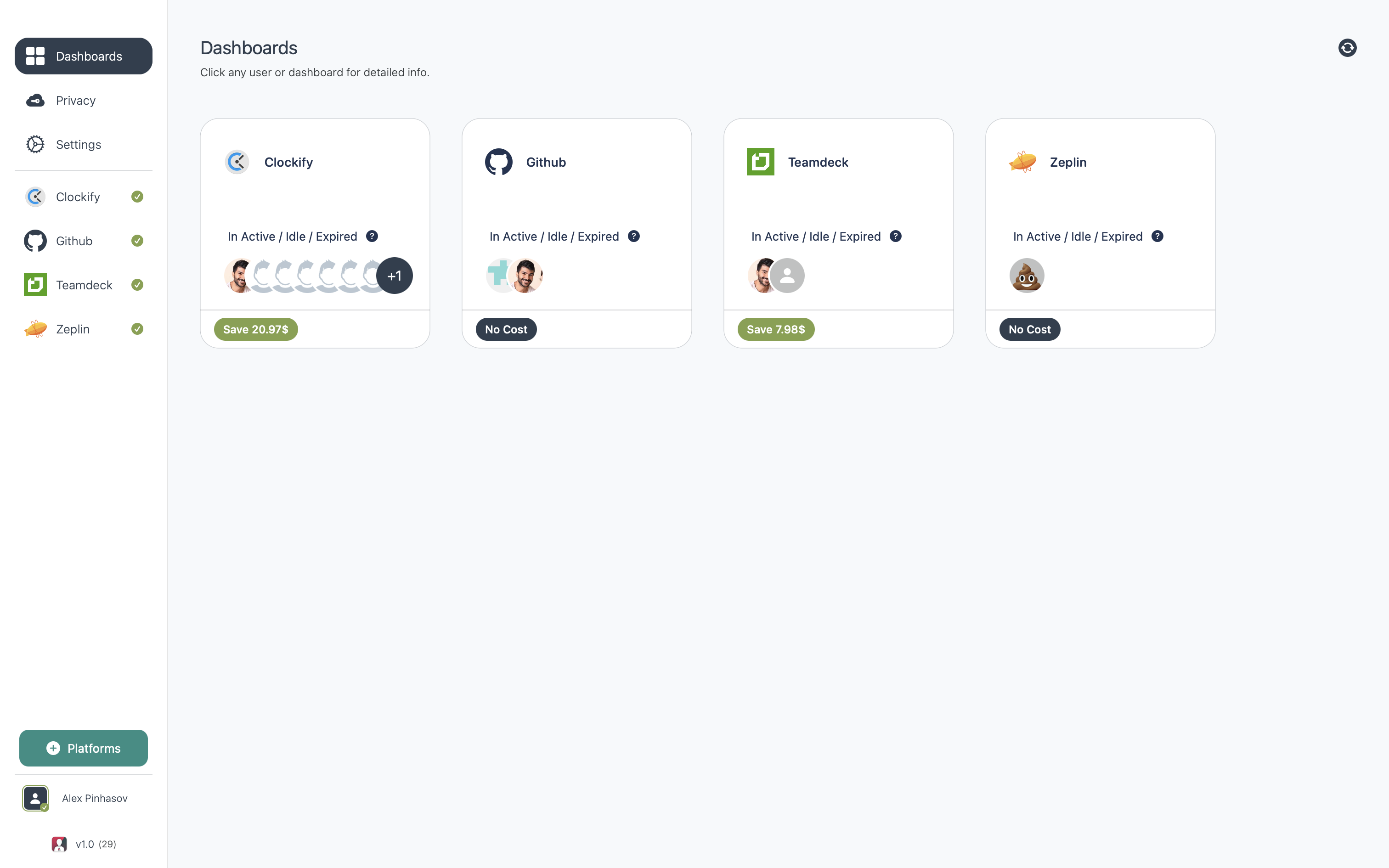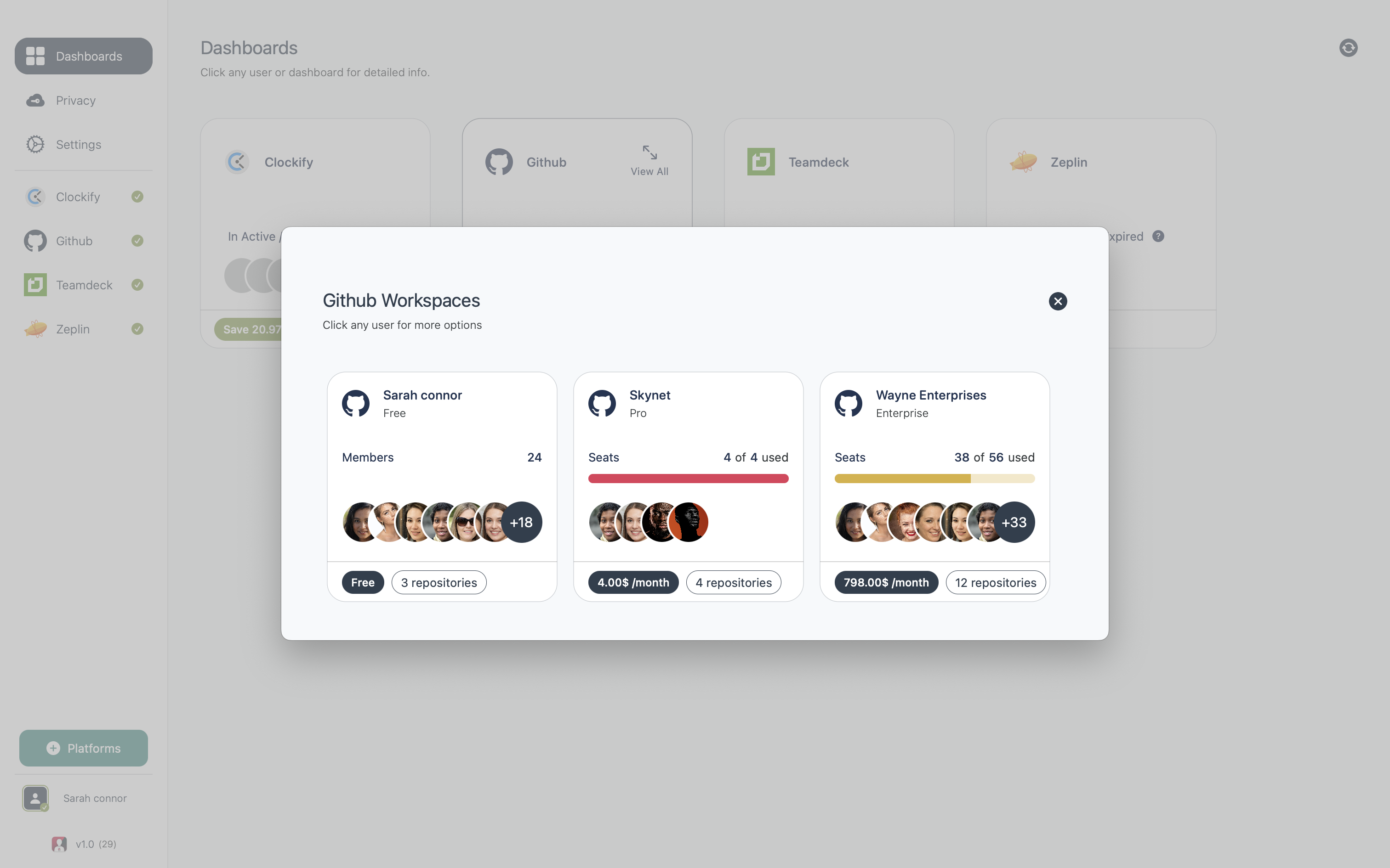 Our platform provides you with a detailed overview of your current state, including how much you are paying for each seat on each platform. This will help you keep track of your expenses and make informed decisions about where you want to allocate your resources.